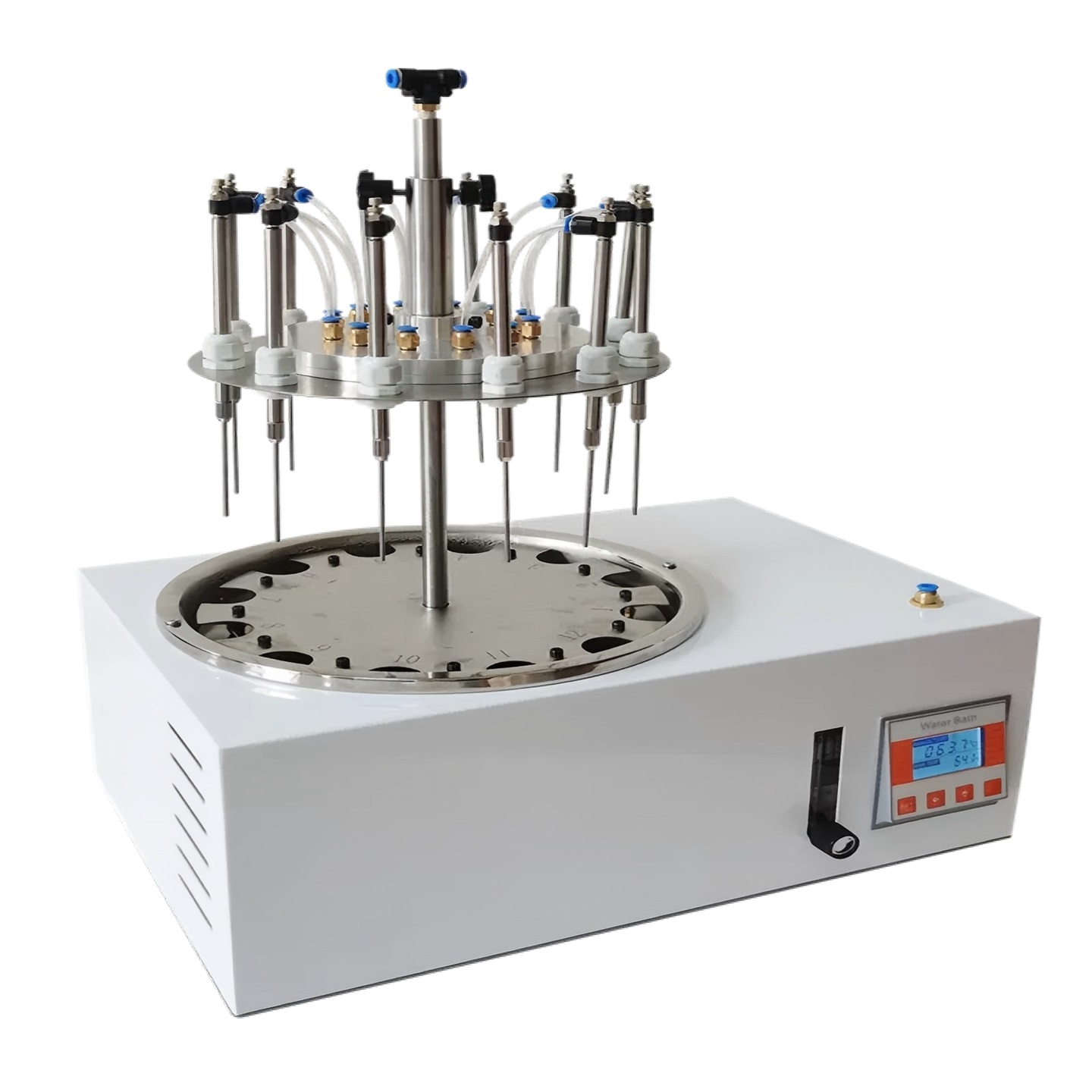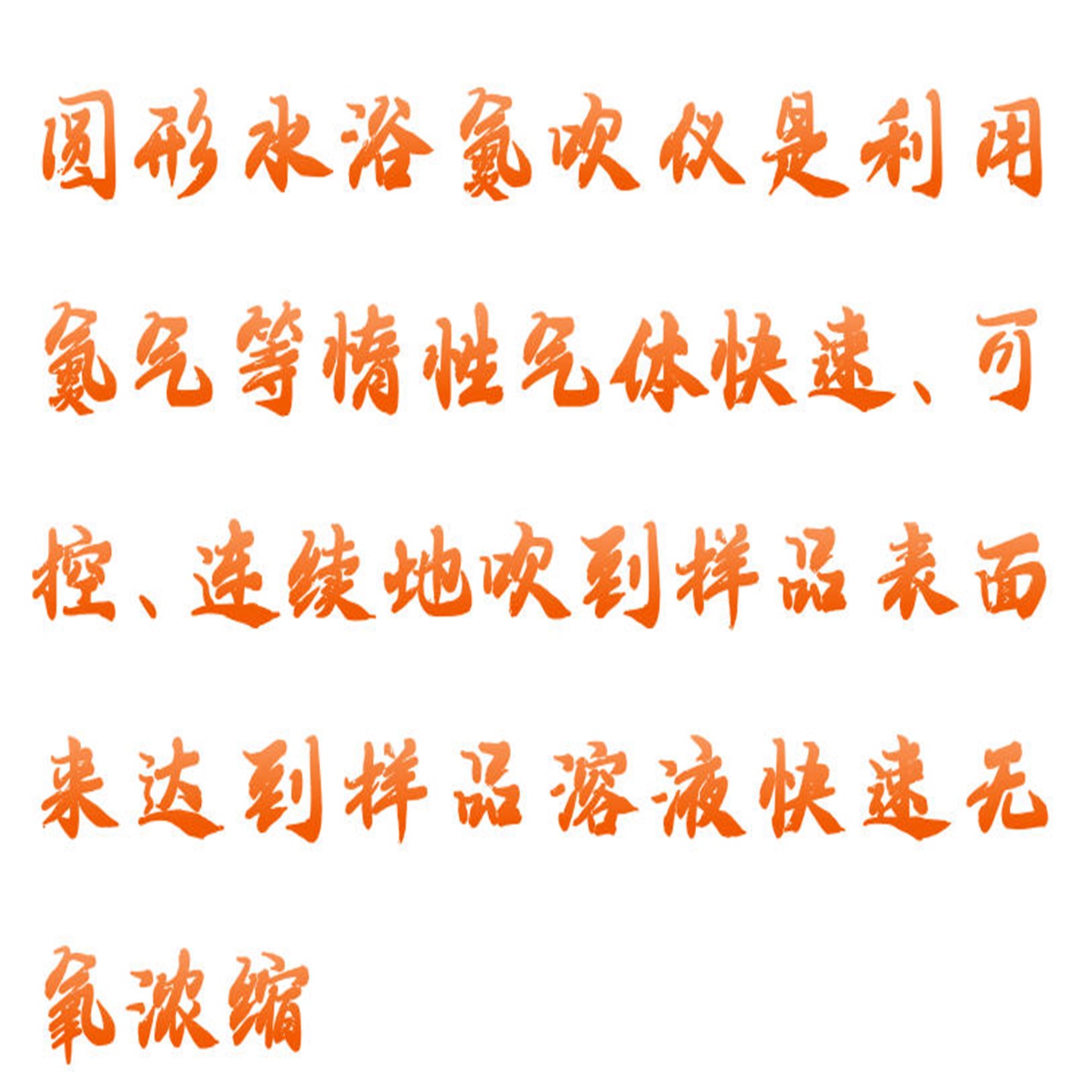 圆形水浴氮吹仪是利用氮气等惰性气体快速、可控、连续地吹到样品表面来达到样品溶液快速无氧浓缩。该方法具有省时、便捷、准确的特点。用于食品、农药残留检测等领域。