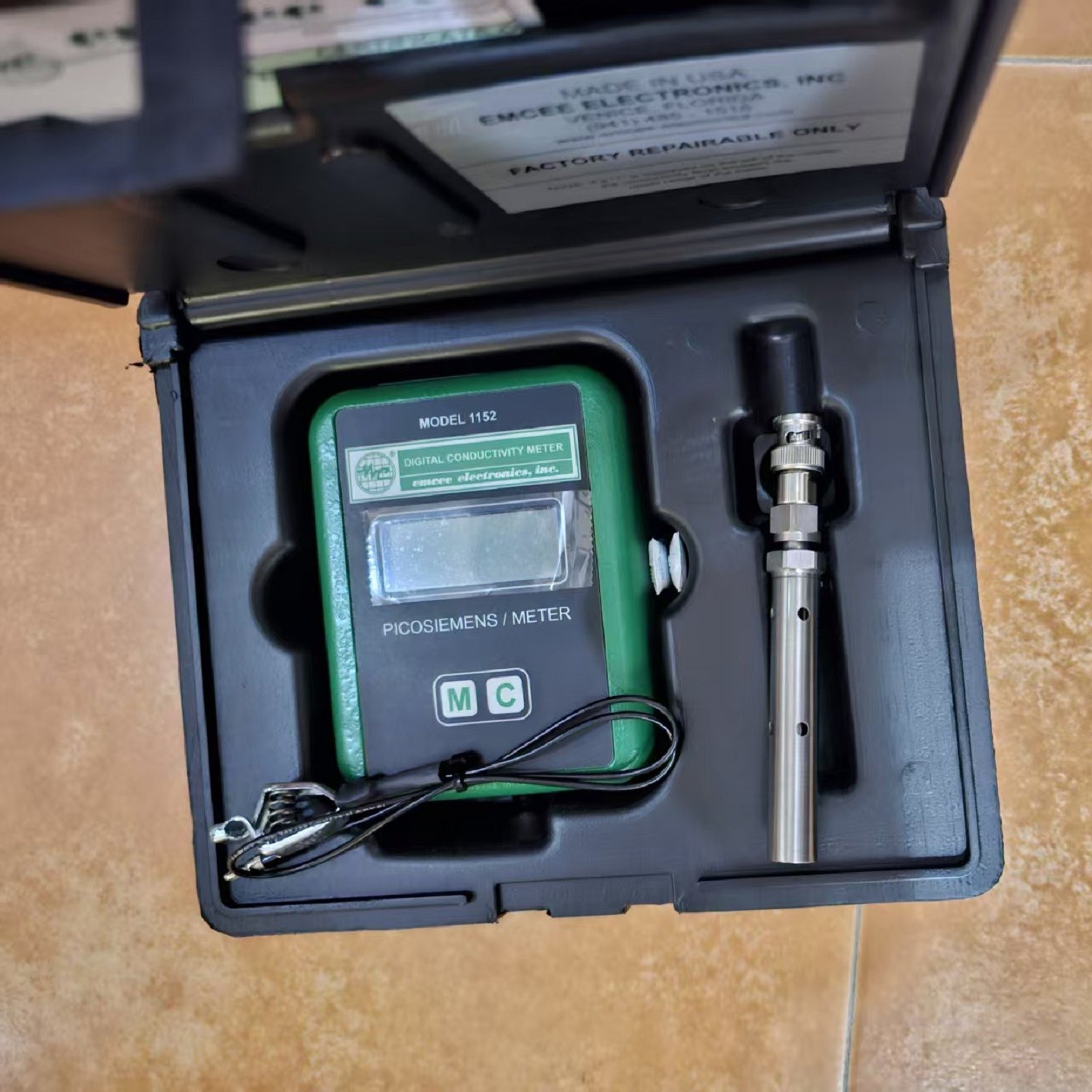 电导率仪内置于表面粗糙、涂有防锈涂料的铝制外壳中,配有可分离的不锈钢探头。