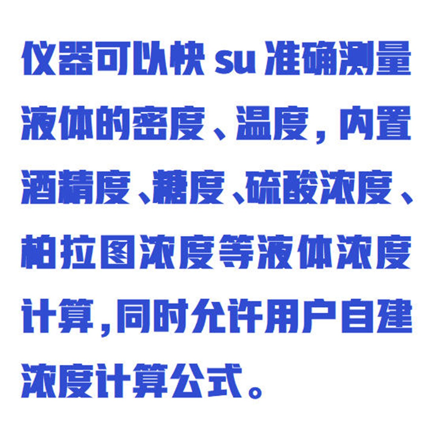 仪器可以快su准确测量液体的密度、温度,内置酒精度、糖度、硫酸浓度、柏拉图浓度等液体浓度计算,同时允许用户自建浓度计算公式。