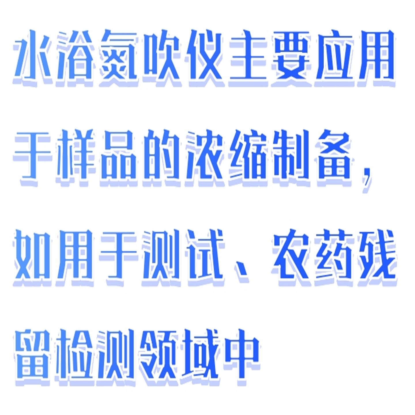 水浴氮吹仪主要应用于样品的浓缩制备,如用于测试、农药残留检测领域中,药丨物筛选、分析、液相、气相及质谱分析中的样品制备.