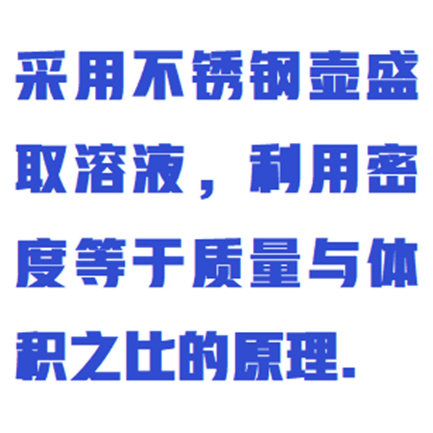 矿浆浓度仪/便携式浓度壶 型号:ED04-EX506库号:M168075 1.适用范围 EX506型便携式浓度壶适合各种悬浮液、矿浆、煤ni水等溶液浓度的测量,其采用不锈钢壶盛取溶液,利用密度等于质量与体积之比的原理,先测出溶液密度,再根据密度与浓度换算公式或密度与浓度对照表,计算出或查表得到溶液浓度,是测量不均匀溶液浓度的产品。 2.EX506型便携式浓度壶组成 EX506型便携式浓度壶由仪表主机和不锈钢密度壶组成,配件有充电器、砝码(选件)等。 3.EX506型便携式浓度壶测量原理 传统的比重瓶/比重壶法测量溶液浓度时,先用标准体积的比重瓶或比重壶盛取溶液,之后利用天平或台秤等测量其重量,所测重量减去比重瓶或比重壶的自重,即为溶液质量,之后用溶液质量除以溶液体积得到溶液的密度,再通过查找密度/浓度对照表得到溶液的浓度,整个操作过程中引入的误差包括以下几个方面:台秤的精度误差,比重瓶或比重壶的体积误差,人工读刻度时产生的误差以及人工计算时产生的误差,整个操作过程较繁琐,占用时间较长,同时所测值只能通过测试人员手工记录或录入,个别场合存在测试人员未经测试直接填入数据的现象。 EX506型便携式浓度壶测量原理与传统比重瓶/比重壶测量密度类似,均基于溶液密度等于质量与体积之比的原理,是将传统比重瓶/比重壶测量密度的方法自动化。 4.EX506型便携式浓度壶特点 EX506浓度壶采用C6精度的进口拉力传感器。 EX506浓度壶传感器合金钢的材料保证了其长期稳定使用,不会像弹簧秤或台秤一样长期使用时,测力弹簧发生变形,从而使线性变差,影响测量精度。 EX506浓度壶瓶采用低温漂的器件,其测量结果不受外界气温的变化而变化,同时24位分度的AD转换器和16位CPU的使用,进一步BAO证了测量精度和测量速度,汉显液晶屏幕实时显示浓度值,显示值至0.1%。 EX506浓度壶提供存储和计算存储数据平均值的功能,现场测试中可能需要采样多次,之后计算各次采样的平均密度值,按下仪表“存储"健,当前显示值立即被保存,按下“平均"键,屏幕显示蕞|近存储的3个数据以及平均值。 EX506浓度壶瓶利用纯|水或标准500g砝码进行校准,操作简单。 EX506浓度壶可存储密度与浓度换算公式,也可以存储10种溶液密度浓度对照表。 EX506浓度壶采用锂电池供电,配备充电器等配件,仪表整体重量不chao过500克。 5.主要技术参数 1) 测定范围:0.0~90.0% 2) 准确度:±0.1%, 3) 分辨率:0.1% 4) 温度范围:-10~55℃ 5) 显示内容:浓度 6) 内置传感器 l 额定载荷 5kg l 综合精度(%) 0.02~0.03(线性+滞后+重复性) l 灵敏度:2.0mV /V l 蠕变:±0.02~±0.03 %F·S/30min l an全|过|载:150% F·S 7) 充电电池组 l 电池:锂电池 l 容量:1500mAh l 充电时间:约4小时(充电时仍可进行测试) l 电池|寿|命:正常使用充放电1000次 l 正常电压:3.7V (Max 3.83V)