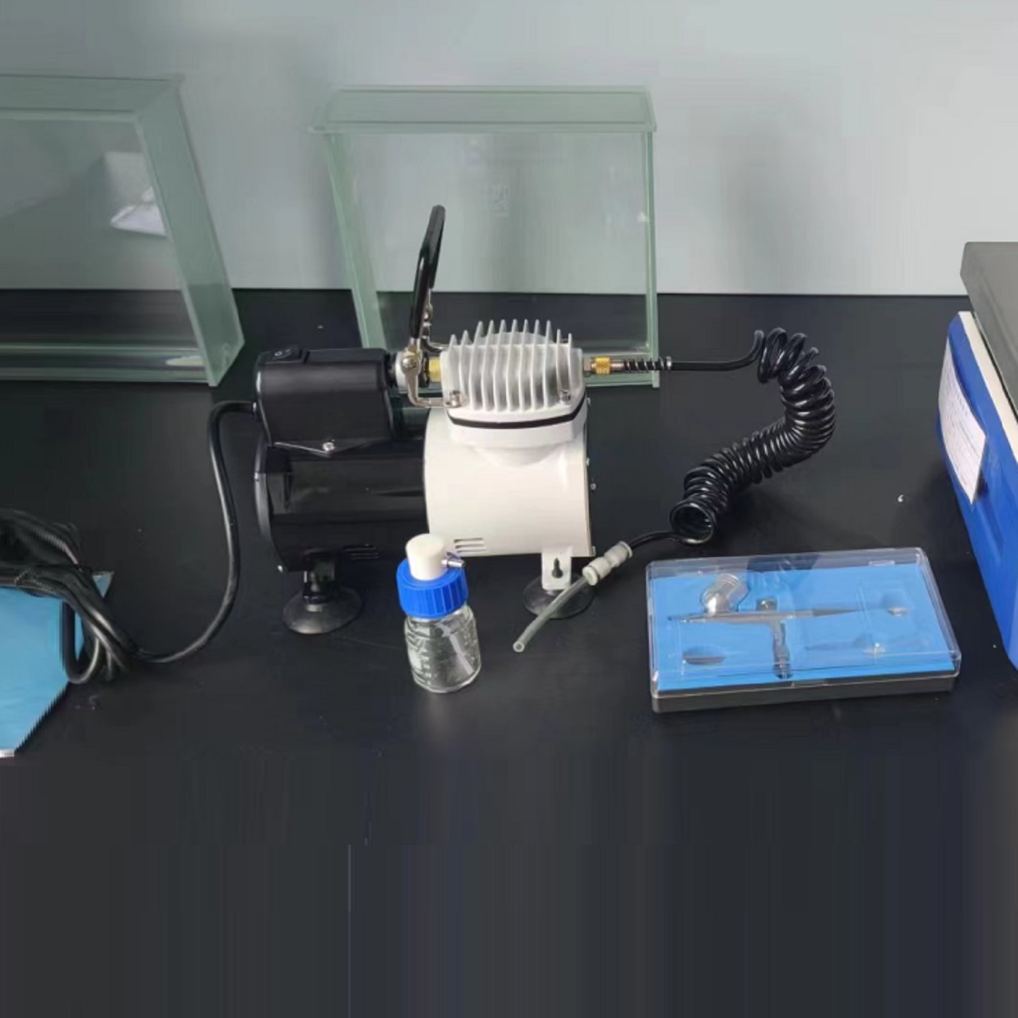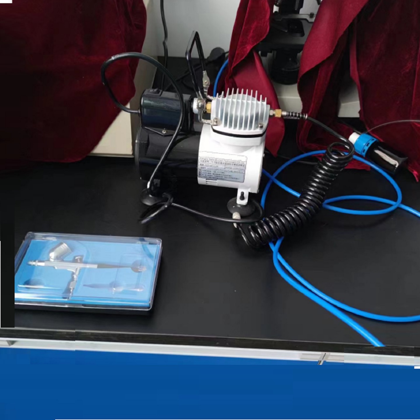 仪器装备了双喷头,B喷头用于非腐蚀性液体,喷口有0.2mm,喷雾细,定向性好,可进行定量喷雾,便于快速切换显色剂;A喷头为聚四氟乙烯制作,喷口有0.3mm,喷雾细,定向性好,用于腐蚀性显色剂如浓硫丨酸的喷雾显色;本仪器还装备了喷雾泵,体积小、噪音低、故障少、便于移动;